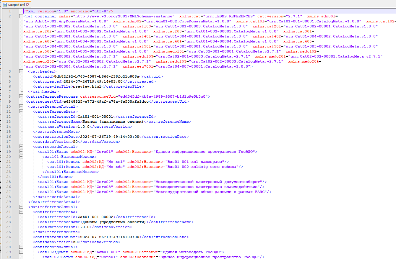 Рисунок 3.3. Пример фрагмента паспорта ТК с ответом на запрос актуальных сведений НСИ